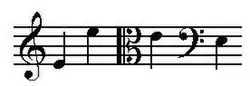 De E (ook wel mi genoemd) is een muzieknoot die een hele toon hoger ligt dan de D en een halve toon lager dan de F.