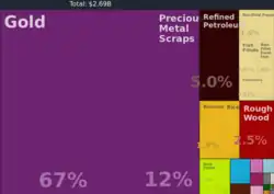 Ter vergelijking waren olie en goud in 2010 goed voor 27% van de overheidsinkomsten, met navenant een sterke afhankelijkheid van de economie van de grondstofprijzen op de wereldmarkt.[5] De goudsector zou in 2018 goed zijn voor 54,5% van de inkomsten van de staat uit de goudsector, zo DNA-lid Patricia Etnel.[4]