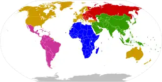 De landen zijn verdeeld in groepen (fracties) zodat er een gelijkmatige verdeling van zetels is voor de regio's van de wereld. De zetels zijn als volgt verdeeld: