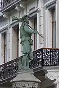 | 1. | Metsers, steenkappers, beeldhouwers en leidekkers (Vier Gekroonden) | ![]() | Godefroid Van den Kerckhove | De ambachtsman houdt in de rechterhand een kompas, in de linker een ontrolde werktekening. Aan zijn voeten liggen een stuk beeldhouwwerk en het gereedschap van een metser en een schaliedekker. | Het beeld kreeg de gelaatstrekken van architect Hendrik Beyaert. |
