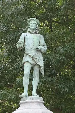 - Abraham Ortelius (1527-1598), door Jef Lambeaux. De afgebeelde is een vermaarde geograaf die de eerste aardrijkskundige atlas van de wereld van zijn tijd uitgaf.