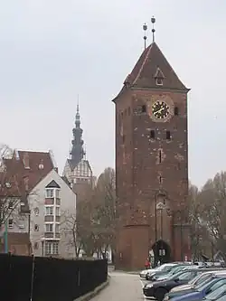 De Marktpoort (Brama Targowa) is het laatste overblijfsel van de middeleeuwse omwalling. Het oudste gedeelte dateert uit 1319.