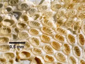 - ↑ Gordon, D.; Hayward, P. (2012). Electra monostachys (Busk, 1854). In: Bock, Phil; Gordon, D. (2012) World list of Bryozoa. Geraadpleegd via: World Register of Marine Species op http://www.marinespecies.org/aphia.php?p=taxdetails&id=111354