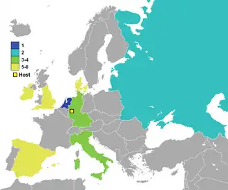 | Land | Kwalificatie als | Eerdere deelnames aan EK1 |
