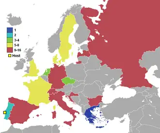 Vlag van Portugal Portugal Gastland13 oktober 19993 (1984, 1996, 2000)
