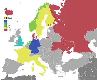 IJsland, Nederland en Oekraïne maakten haar debuut op dit eindtoernooi.