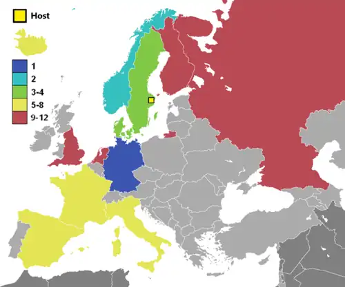 Gastland Zweden was als organisator vrijgesteld van kwalificatie.