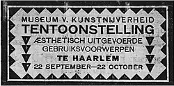 - Tentoonstelling voor aesthetisch uitgevoerde gebruiksvoorwerpen, 22 september-22 oktober (verlengd tot 29 oktober), Museum voor Kunstnijverheid, Haarlem.