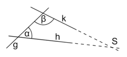 Een lijn die twee gegeven evenwijdige lijnen snijdt maakt met elk van de twee lijnen vier hoeken. De evenwijdigheid van de twee gegeven lijnen zorgt ervoor dat een aantal hoeken gelijk zijn.