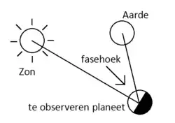 De fasehoek is een hoek tussen de richtingen waarin een waarnemer op de Maan of op een planeet de Zon en de Aarde zou kunnen zien. Bij volle en nieuwe maan is de fasehoek van de Maan dus 0 graden, evenals van een binnenplaneet tijdens de onder- en bovenconjunctie en van een buitenplaneet tijdens oppositie en conjunctie.