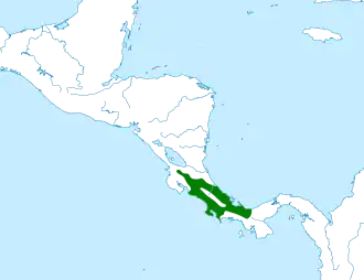 De vogel komt voor in oostelijke Costa Rica en westelijk Panama. De leefgebieden liggen in zowel natuurlijk bos als meer in cultuur gebracht gebied op hoogten tussen de 800 en 2200 meter boven zeeniveau.[3] De vogel staat als niet bedreigd op de rode lijst van de IUCN.[1]