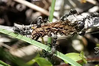 | Formica japonica mieren slepen een rups | ||||||||||||||||