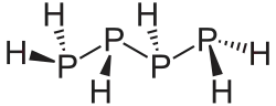 Tetrafosfaan(6) bestaat uit een keten van 4 fosforatomen.