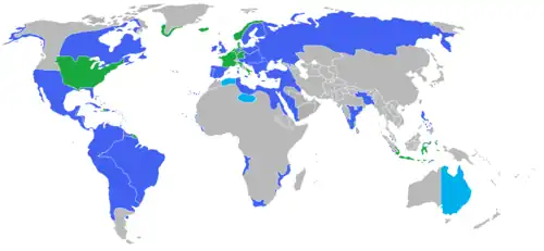 - ↑ Hoewel Frankrijk en de VS niet uitgesproken bondgenoten waren, vocht de VS in de gelijktijdige Oorlog van 1812 tegen Groot-Brittannië en kocht het gebied Louisiana van Frankrijk in 1803.
