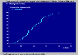 - ↑ CumFreq, a program for cumulative frequency analysis. Download van webpagina: CumFreq, Distribution fitting of probability, free software, cumulative frequency Voorbeelden van CumFreq toepassingen zijn te vinden in: Drainage Research in Farmers' Fields: Analysis of Data. Part of project “Liquid Gold” of the International Institute for Land Reclamation and Improvement (ILRI), Wageningen, The Netherlands. Online: Analyse met CumFreq. Gearchiveerd op 18 april 2023.