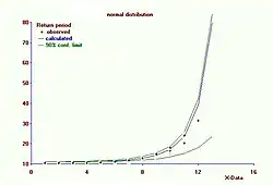 - ↑ Benson, M.A. 1960. Characteristics of frequency curves based on a theoretical 1000 year record. In: T. Dalrymple (ed.), Flood frequency analysis. U.S. Geological Survey Water Supply paper 1543–A, p. 51-71