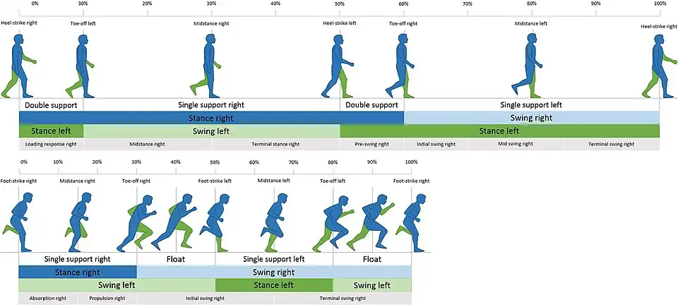 Dit artikel of een eerdere versie ervan is een (gedeeltelijke) vertaling van het artikel Gait (human) op de Engelstalige Wikipedia, dat onder de licentie Creative Commons Naamsvermelding/Gelijk delen valt. Zie de bewerkingsgeschiedenis aldaar.
