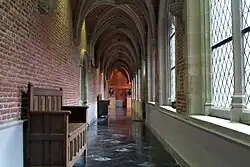 Het vierhoekig hoofdgebouw omsluit een binnentuin die op zijn beurt omringd wordt door de kloostergangen. Deze vormen de belangrijkste assen waarlangs de bezoekers naar het geheel van de museumzalen worden geleid.
