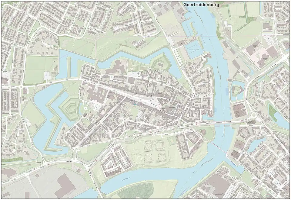 Kaart van het oude centrum van Geertruidenberg, met de vestinggordel.