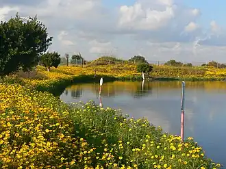 | Een veld met gekroonde ganzenbloemen (Glebionis coronaria var. coronaria) in een park in de Israëlische stad Rishon LeZion | ||||||||||||||||||||||
