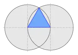 Een gelijkzijdige driehoek kan gemakkelijk met passer en liniaal worden geconstrueerd als een lijnstuk is gegeven. Teken daartoe de twee cirkels met het ene eindpunt van het lijnstuk als middelpunt die door het andere eindpunt van het lijnstuk gaan. De twee cirkels snijden in twee punten. Elk van deze punten kan als derde punt van de gelijkzijdige driehoek gelden.