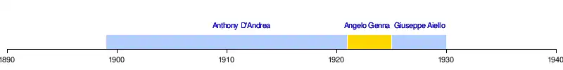 Nadat de gebroeders Genna uit beeld waren geraakt, riepen de broers Joseph "Joe" Aiello, Salvatore "Sam" Aiello en Pietro "Peter" Aiello zichzelf uit tot de nieuwe leiders van de familie Genna. De gebroeders Aiello hadden goede banden met Salvatore Maranzano van de New Yorkse familie Bonanno en met de North Side Gang. De broers probeerden vervolgens Al Capone te vermoorden om Chicago compleet in hun handen te krijgen. Capone was ze echter voor en liet Giuseppe Aiello in 1930 vermoorden. Hierdoor kreeg de Chicago Outfit de complete Italiaanse georganiseerde misdaad in en rondom Chicago in handen.