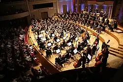 Het orkest heeft de klassieke bezetting van een symfonisch orkest (of groot orkest), aangevuld met extra instrumenten of musici wanneer dit door het repertoire wordt vereist.
