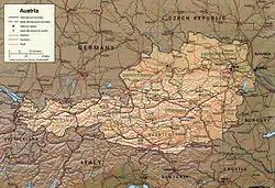 | Grenslanden: | Tsjechië 362 km, Duitsland 784 km, Hongarije 366 km, Italië 430 km, Liechtenstein 35 km, Slowakije 91 km, Slovenië 330 km, Zwitserland 164 km |