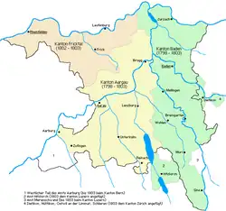In 1802 nam de Helvetische Republiek een nieuwe grondwet aan. Volgens deze grondwet konden de kantons Baden en Aargau samen worden gevoegd en kon het Franse protectoraat Fricktal een zelfstandig kanton worden binnen de Helvetische Republiek. Fricktal werd inderdaad een zelfstandig kanton, de vereniging van Aargau en Baden bleef achterwege.