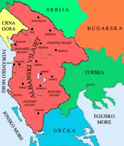 Toen in de 18e en 19e eeuw het Ottomaanse Rijk verzwakte en het daardoor steeds meer gezag en macht verloor begon de Albanese opstand tegen de Turken weer op te leven. De opstanden waren het gevolg van de nationale ontwaking (Albanees: Rilindja Kombëtare) van de Albanezen. Een periode waarin het Albanees nationalisme werd gesticht en de Albanezen op de Balkan naar een eigen culturele, sociale en politieke natiestaat streefden.[8]In Kosovo werd in 1878 een Albanese vilajet uitgeroepen door de Frashëri dynastie. Deze werd echter kort hierna, in 1881, weer ontbonden. Ondanks het grote paramilitaire offensief in Albanië tegen de Turken en overwinningen in verschillende veldslagen onder de voornaamste commandant Isa Boletini, wisten de Albanezen geen erkende onafhankelijkheid te realiseren maar was dit wel de eerste stap naar de gewenste onafhankelijkheid, die enkele maanden later, in november 1912, werkelijkheid zou worden.