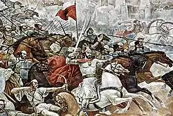 Op 2 maart 1444 nodigde de Albanese prins Gjergj Kastrioti, zoon van Gjon Kastrioti, alle Albanese heersers, die ieder over eigen lokaal vorstendom heersten, uit in de stad Lezhë om zich te verenigen tot één Albanese staat, welke de Liga van Lezhë zou worden. Gjergj Kastrioti – ook wel Skanderbeg genoemd – kroonde zich na de oprichting van de Liga tot heer van Albanië. De Liga van Lezhë wordt beschouwd als de bakermat van een territoriaal Albanië.[5]Het doel was om de Ottomaanse en Venetiaanse bezetters te bestrijden en definitief te verslaan. Onder leiding van Gjergj Kastrioti en zijn voornaamste compagnons Lekë Dukagjini, Vrana Konti, Vladan Jurica en Tanush II Thopia kwamen de Albanezen in opstand. De Albanees-Venetiaanse Oorlog duurde kort en was succesvol, de Albanezen wisten de Venetianen te verdrijven uit Albanië en hun gebied te behouden. In de strijd tegen het Ottomaanse Rijk wonnen de Albanezen veel veldslagen tegen de legers van de sultans die onder leiding van Murat II, later Mehmet II, de volkeren van de Balkan wilden inlijven bij het Ottomaanse Rijk. Overwinningen van de Albanezen op de Ottomanen waren onder anderen de Slag van Torvioll, de Slag van Mokra, het eerste Beleg van Krujë, de Slag om Polog, de Slag bij Oronichea, de Slag om Albulena, de Slag om Ohrid en het tweede Beleg van Krujë. Van de in totaal 25 veldslagen tegen het Ottomaanse Rijk won de Liga van Lezhë er 24 en verloor het er één, namelijk het Beleg van Berat in 1455, toen de Albanezen de in 1450 veroverde stad Berat probeerden te heroveren nadat het Ottomaanse leger de Albanese prins Teodor III Muzaka en zijn vijfhonderd lijfwachten hadden overmeesterd in het kasteel van Berat.