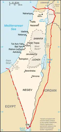 De autonome gedeelten van de Westelijke Jordaanoever en de Gazastrook vormen sinds 1994 de Palestijnse Autoriteit, conform de Oslo-akkoorden uit 1993. Volgens de verdragen tussen de PLO en de Israëlische regering blijven de nederzettingen of koloniën, Israëlische dorpen en steden die sinds 1967 in deze gebieden zijn gebouwd, tezamen met het grootste deel van de Palestijnse gebieden (Area C, zie Gouvernementen van Palestijnse Autoriteit) voorlopig onder Israëlisch gezag.[41]