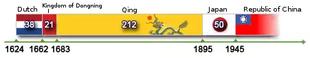 Door de laksheid van de Chinese regering was Taiwan in de 19de eeuw een plaats van geweld en wetteloosheid. In 1874 werd een Japanse strafexpeditie naar het eiland georganiseerd. De aanleiding was de onthoofding van 54 vissers door de lokale bevolking waarvoor Japan genoegdoening eiste. In 1894 brak de Eerste Chinees-Japanse Oorlog uit in verband met de inval van Japan in Korea. In 1895 moest China het vernederende verdrag van Shimonoseki aanvaarden. Dit hield in dat China Taiwan en nog een aantal kleinere eilanden moest afstaan aan Japan. Taiwan deed een poging om zelf een bestuur op te zetten maar dat liep mis en Taiwan bleef tot aan het einde van de Tweede Wereldoorlog onder de heerschappij van Japan.