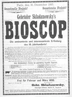 | 1895 | Eerste bioskopen: de gebroeders Skladanowsky en de gebroeders Lumière vertonen voor het eerst een film voor een betalend publiek |