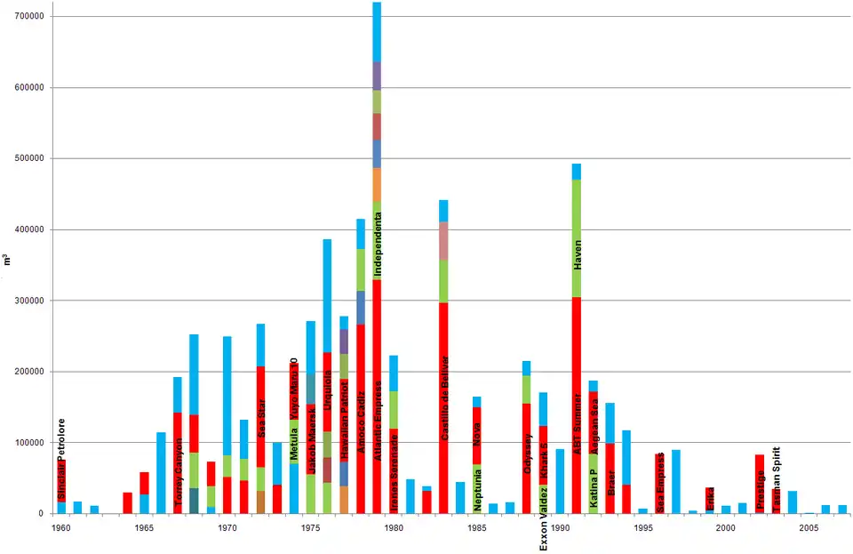 Door grote olierampen, vooral die van de Torrey Canyon in 1967, werd het publiek doordrongen van het gevaar dat olietankers voor het milieu kunnen opleveren. Oliemaatschappijen verenigden zich hierop in 1970 in het Oil Companies International Marine Forum om betrokken te raken bij de daarop volgende regelgeving zoals MARPOL 73. Ook werd in 1968 International Tanker Owners Pollution Federation opgericht om gedupeerden schadeloos te stellen.