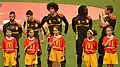 Van 1980 tot en met 2019 was dit de Belgische vlag, met daarrond twee gouden takken en erboven een gouden kroon. In de Belgische vlag stond de tekst URBSFA KBVB 1895.