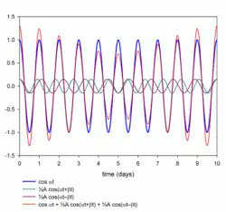 Met de vereenvoudiging dat de amplitude van hoofdcomponent cos αt gelijkgesteld wordt aan 1, ziet dat er mathematisch zo uit: