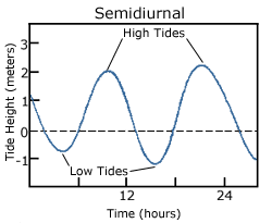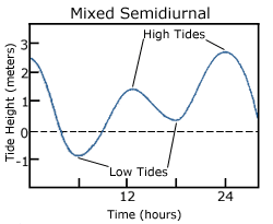 - ↑ Voor een overzichtskaart van de gebieden met een van de drie getijdentypen, zie NOAA website. Gearchiveerd op 25 juni 2023.