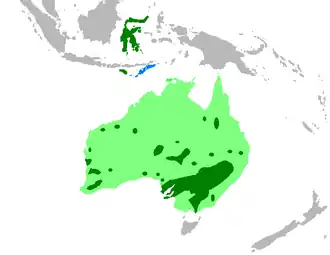 Deze soort komt voor op Sulawesi, de Sula-eilanden en de oostelijke Kleine Soenda-eilanden en in Australië.