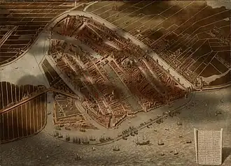 | Gezicht op Amsterdam in vogelvlucht | ||||