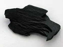 - Vanwege zijn diepzwarte kleur is de uitdrukking 'gitzwart' afkomstig van dit materiaal.