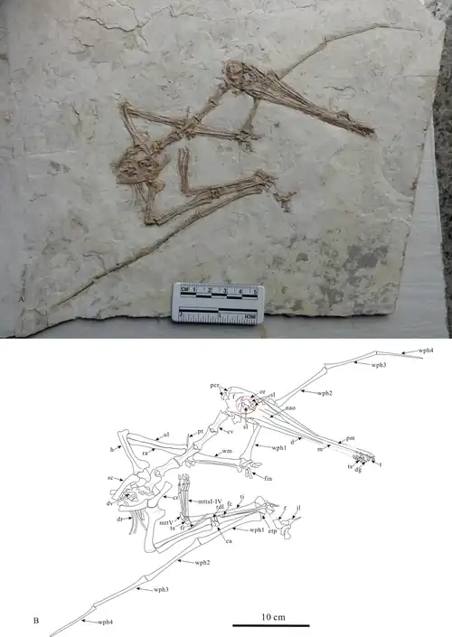 In 2016 werd een tweede specimen beschreven, JPM 2014–004, een jong dier uit de Jiufotangformatie met een spanwijdte van zo'n vijfenzeventig centimeter. Het is veel completer dan het holotype, ligt in verband, en omvat behalve schedel en onderkaken bijna het hele postcraniaal skelet met uitzondering van de achterste ruggenwervels, het heiligbeen, de staart en de linkerachterpoot. Het exemplaar zou gezien histologisch onderzoek jonger zijn dan het holotype. Ook het tweede specimen is van de illegale fossielenhandel afkomstig die een afgebroken stuk van de onderkaak omgekeerd weer vastlijmde. Het werd opnieuw geprepareerd door Zhang Yuqing. Het maakt tegenwoordig deel uit van de collectie van het Jinzhou Paleontological Museum.