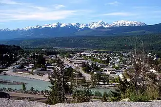 De nederzetting ontstond rond het spoorwegstation aan een transcontinentale spoorweg, waar deze uit de Rocky Mountains komt (uit de vallei van de Kicking Horse) en de brede Rocky Mountain Trench bereikt. Even ten noordwesten van de stad mondt de Kicking Horse uit in de Columbia.