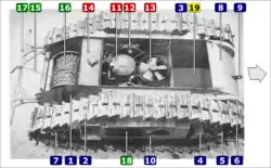 16: Wikkel van de besturingskabel 17: Geleider en bescherming voor de besturingskabel 18: Batterijen 19: Opbergplaats voor explosieven.