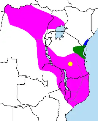 | Verspreiding van het goudsluitslurfhondje (in blauw). | ||||||||||||