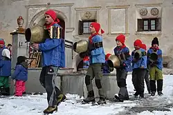 De chalandamarz in het dorp Guarda waarmee het einde van de winter wordt gevierd. Guarda staat bekend om haar beschilderde huizen.