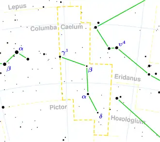 De dubbelster gamma Caeli, vijf graden ten oostnoordoosten van beta Caeli, is gemakkelijk te herkennen daar zich een kwart graad ten zuiden ervan de ster x Caeli vertoont (gamma 2 Caeli). Dit koppel klimt tijdens de culminatie ervan tot drie en een halve graad boven de zuidelijke horizon.