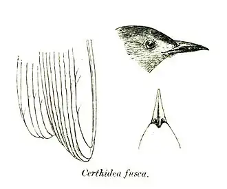 | Afbeelding uit 1870 van Certhidea fusca | ||||||||||||