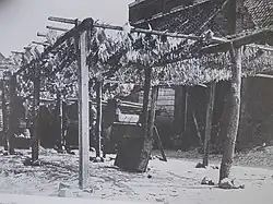 De drogerijen lagen aan de rand maar ook wel in het hart van de kustdorpen. Het drogen bood veel vrouwelijke dorpelingen werk. Het was echter een bezigheid die leidde tot velerlei lichamelijke ongemak door dit buitenwerk in kou en nattigheid. De aangekochte schollen werden allereerst ontdaan van de kop en de ingewanden; ze werden 'gesneden'. Vervolgens gingen ze in kuipen, gevuld met pekelwater. Wanneer ze voldoende doordrenkt waren door het pekelwater werd dit geloosd en werd schoon water toegelaten om de schollen te wassen. Vervolgens regen de vrouwen de schollen aan speten. De speten werden horizontaal op rekken gelegd die rij aan rij de droogvelden vulden. Wind en zon moesten de rest doen. Bij regen werden de rekken en speten met rieten matten afgedekt.[7] Al met al ging het om een niet te verwaarlozen exportproduct. Coenen sprak in zijn tijd al over de export van de gedroogde vis naar Keulen, Frankfurt, Mainz en Straatsburg.[8]