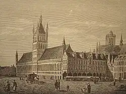 Lakenhalle, belfort en Nieuwerck- Noordkant met Kasselrijgebouw